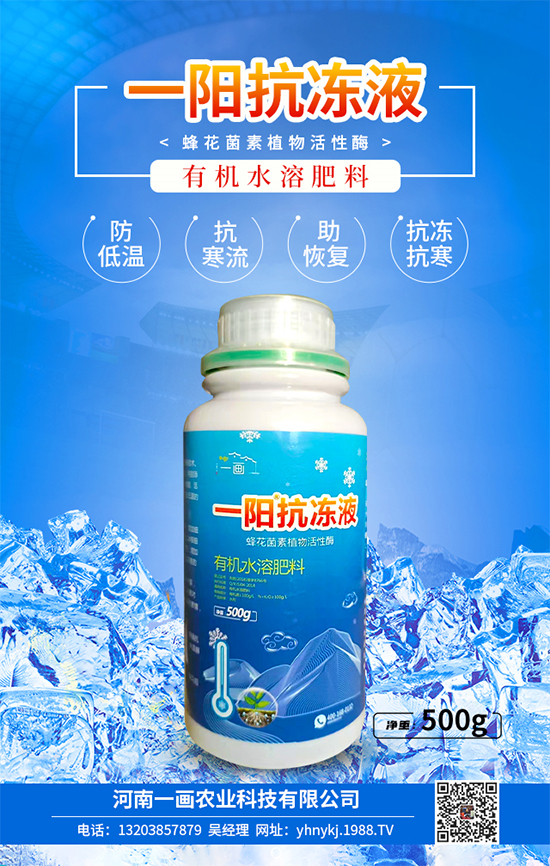 作物防凍施肥建議選擇河南一畫農(nóng)業(yè)科技有限公司【有機水溶肥料-一陽抗凍液】本品是經(jīng)微生物發(fā)酵濃縮而成的有機水溶肥料,大部分營養(yǎng)成分為菌體代謝產(chǎn)物,能有效提高作物品質(zhì),增加作物產(chǎn)量,是發(fā)展無公害綠色農(nóng)業(yè)的理想產(chǎn)品。