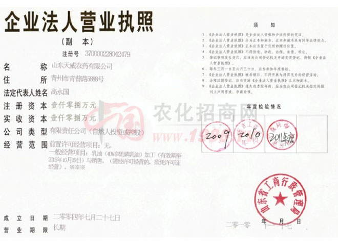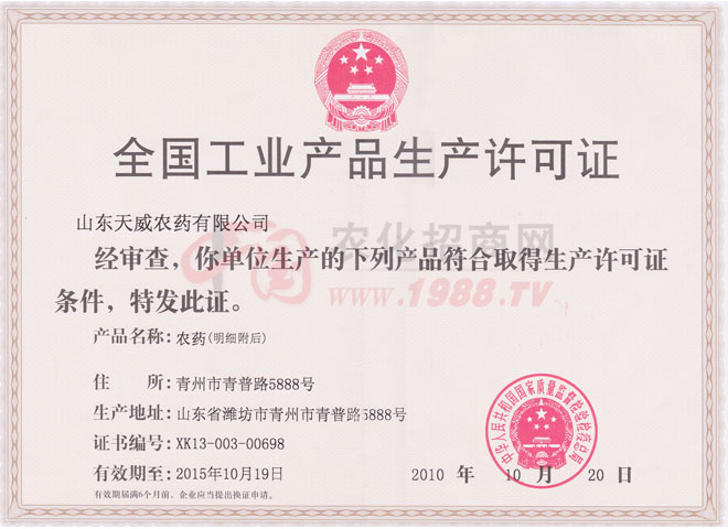山東天威農(nóng)藥有限公司和青州市奧諾農(nóng)化有限公司是國(guó)家發(fā)改委、農(nóng)業(yè)部農(nóng)藥、肥料定點(diǎn)生產(chǎn)企業(yè);是國(guó)家農(nóng)業(yè)部農(nóng)藥檢定所農(nóng)藥科學(xué)與管理理事單位。