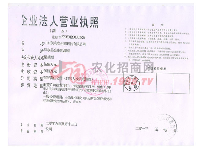 山東凱利農(nóng)生物科技有限公司坐落于山東省中南部素有“海岱名川”之譽(yù)的泗水縣,是一家集科研、生物技術(shù)開發(fā)、生產(chǎn)、銷售為一體的綜合性國家農(nóng)藥定點(diǎn)生產(chǎn)企業(yè),注冊資金1000萬,公司,占地面積50000㎡,固定資產(chǎn)投資2000萬元,流動(dòng)資金1000萬元,現(xiàn)有辦公面積3000㎡,化驗(yàn)室1000㎡,生產(chǎn)車間10000㎡,主要生產(chǎn)設(shè)備50臺(tái),現(xiàn)有職工300人。
