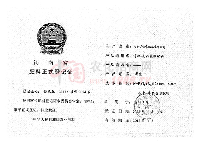 • 肥料正式登記證肥料正式登記證