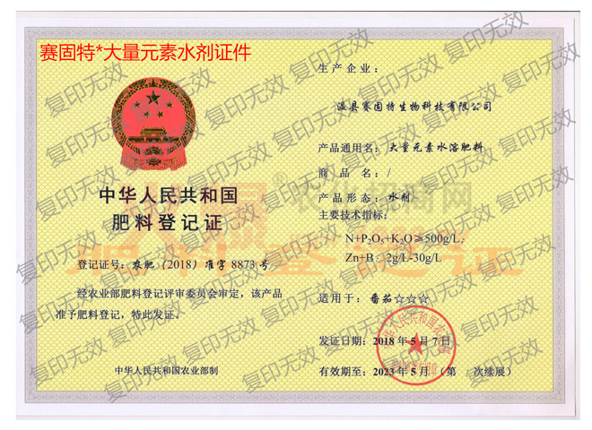 賽固特(武漢)生物科技有限公司的產(chǎn)品品質(zhì)上乘,種類繁多,包括化學(xué)合成水溶肥類,EDTA螯合態(tài)元素類、有機(jī)碳無機(jī)營養(yǎng)小分子液體肥,礦物源植物抗逆劑等,有賽固特、雪綠豐、歐樂鉀、微力補等系列產(chǎn)品,可用于沖施、滴管、葉面噴施,客戶遍及及整個亞洲。